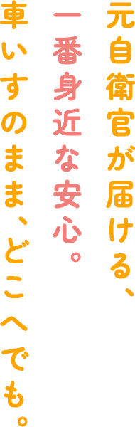 元自衛官のドライバーが、安心・丁寧をモットーに、皆様の日常がより便利に、より豊かになるよう心を込めてお手伝いいたします。